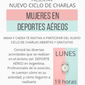 La ASOCIACIÓN de MUJERES en la AVIACIÓN ARGENTINA – AMAA – y la CONFEDERACIÓN ARGENTINA de ACTIVIDADES AERODEPORTIVAS – CADEA- Invitan a Uds. a participar del Ciclo de charlas abiertas y gratuitas de MUJERES EN DEPORTES AÉREOS. Durante el 2020 desde AMAA se realizaron con muchísimo éxito los TALLERES AERONÁUTICOS,… Leer más »